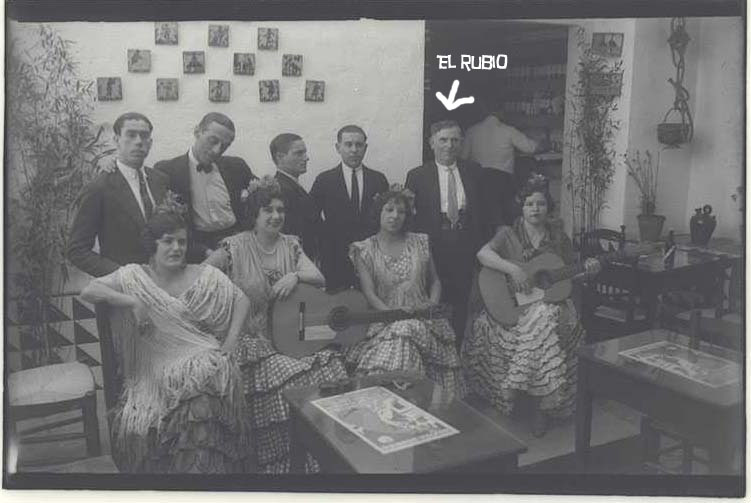 También el fotógrafo Josep Brangulí inmortalizó al cuadro flamenco del Patio del Farolillo, al Rubio y a su gerenta, Rosita Rodrigo: