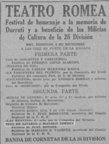 En este espectáculo ya fue anunciada con el guitarrista Manolo Torres con el que seguiría trabajando durante toda la Guerra Civil y la posguerra.
