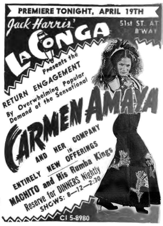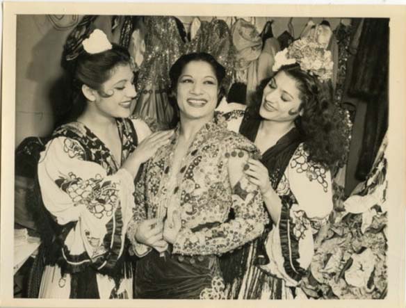 La primera noticia que tenemos de la chaqueta es en abril de 1943, mientras Carmen Amaya triunfaba apoteósicamente en el cabaret La Conga de Nueva York, gestionado por Jack Harris.