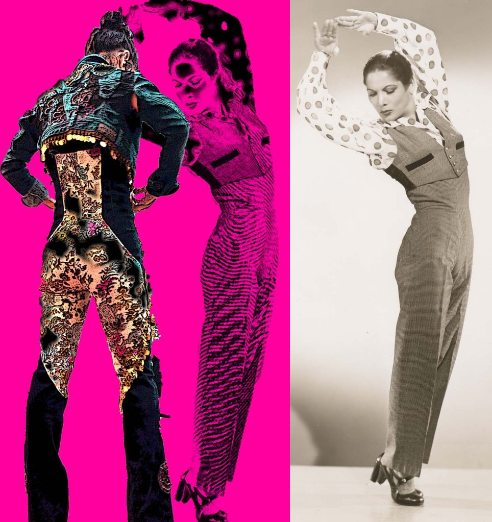 De Carmen Amaya, hasta las leyendas son poéticas y parte de lo que generan esas invenciones se convierte en arte. A mí me gusta especialmente la chaquetilla que creó la diseñadora de vestuario Yaiza Pinillos para Olga Pericet. La estrenaron en el pequeño homenaje que le tributó el Mercat de les Flors de Barcelona a Carmen Amaya en mayo de 2013. Olga Pericet inauguró con su baile una sala de pequeño formato que a partir de ahora recibe el nombre de la genial bailaora.