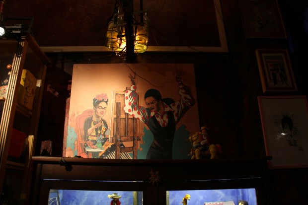 El artista (pintor, ilustrador, músico) Santos de Veracruz es el primero que ha juntado a dos mujeres tan carismáticas como Frida Kahlo y Carmen Amaya en un cuadro. Una reproducción de su obra se puede observar en el interior de la Bodega Saltó del barrio del Poble Sec en Barcelona.