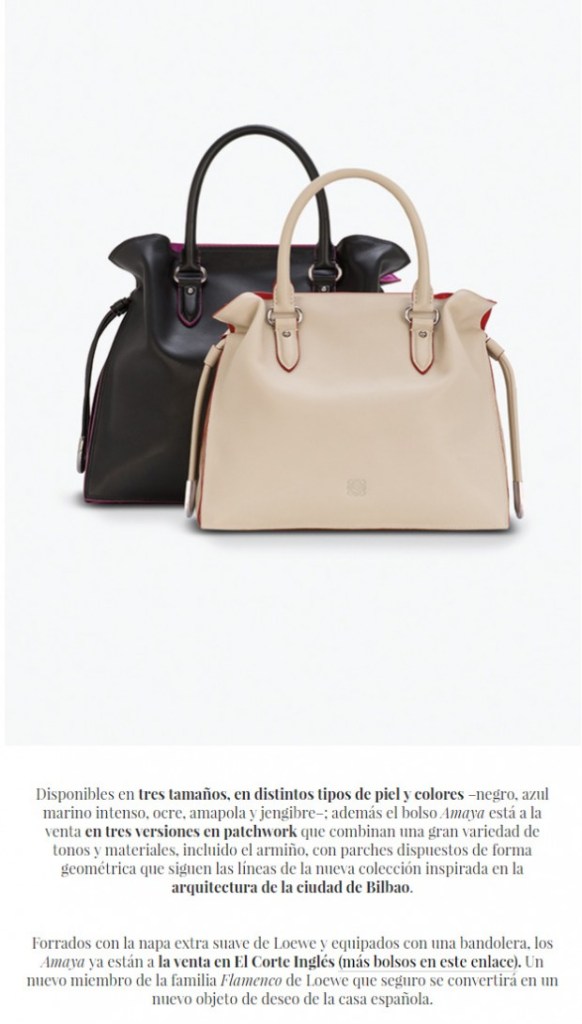 La marca de ropa Loewe lanzó en 2013 una versión de su bolso modelo flamenco y lo bautizaron como bolso “Amaya” por el módico precio de 1650 eurazos.