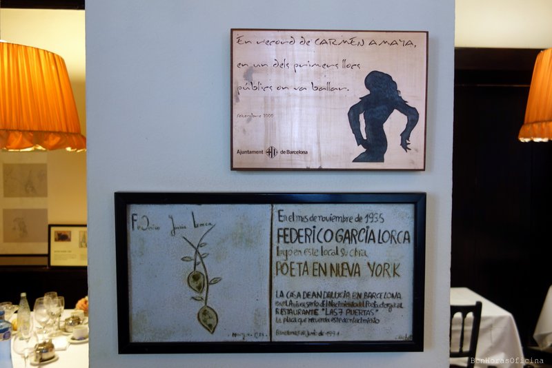 El histórico restaurante Set Portes, o 7 puertas, lleva funcionando en el sector de la restauración desde 1836 en los bonitos porches de Xifré, muy cerca del puerto y de la Barceloneta. A mitad del siglo XIX funcionó como café-cantante y no sería raro que Carmencita Amaya y su padre en alguna de las idas y venidas desde su barraca de la playa al Barrio Chino actuaran allí alguna que otra madrugada. Pero no tenemos ningún dato extra que lo corrobore. De todos modos, lo añadimos al itinerario Carmen Amaya por Barcelona.