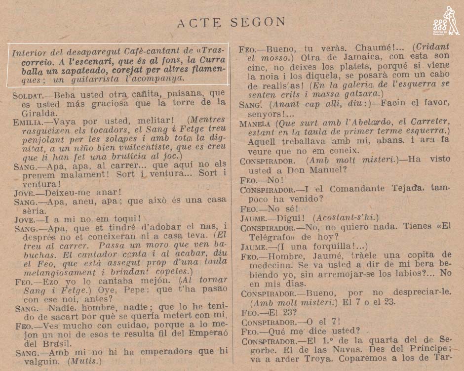 Fue estrenada en el Teatro Español del Paralelo el 7 de junio de 1924, así que Carmen podía tener aproximadamente 6 añitos. Y el acto segundo empieza ambientado en un café cantante con flamencos y flamencas, en el que bien pudieran aparecer ella y su padre guitarrista.