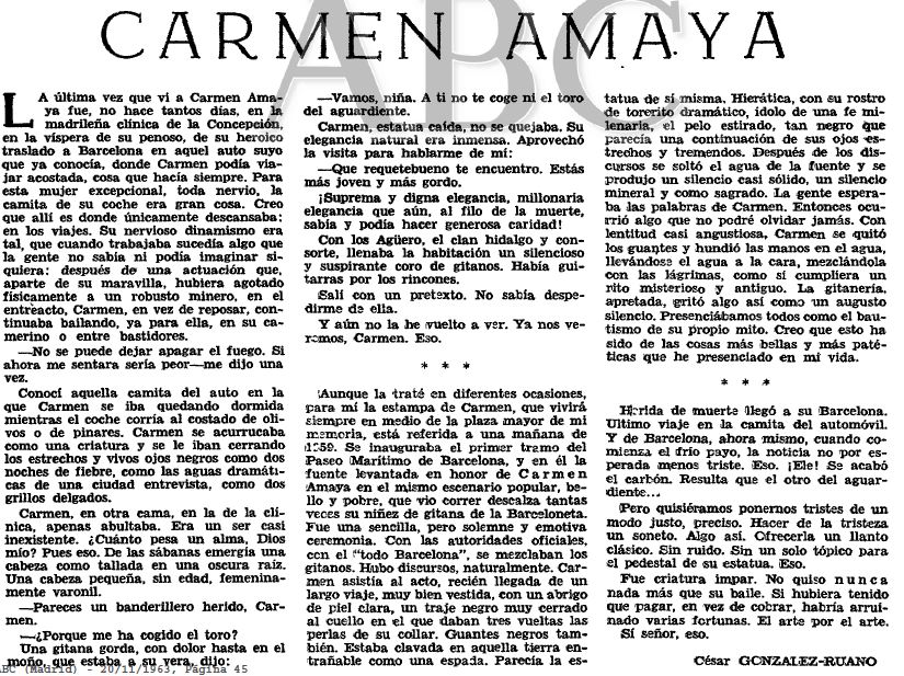 César González-Ruano le dedicó un sentido artículo en La Vanguardia el 20 de octubre de 1959: